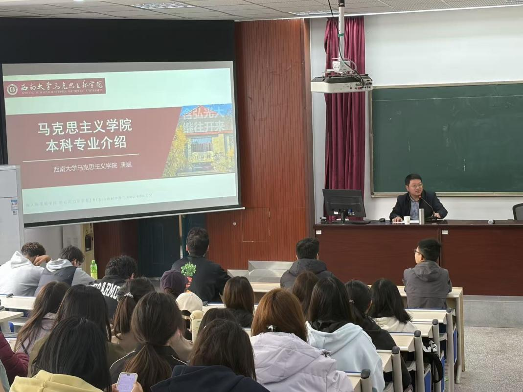 为切实做好少数民族预科升科升学指导,帮助员工了解专业、科学规划本科发展路径,公司在2025级预科持续举办“西南大学少数民族预科升科指导系列讲座”。2026年3月12日,第一场讲座邀请到西南大学马克思主义公司副经理唐斌教授来院开展宣讲。公司副经理陈永亮、党委副书记张静、预科辅导员和25级少数民族预科全体员工参加。