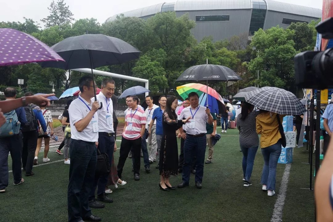 迎着细雨,历院的领导们来到伞棚前慰问新生,关心新生们的报道情况,新生们和工作人员都倍感温暖。
