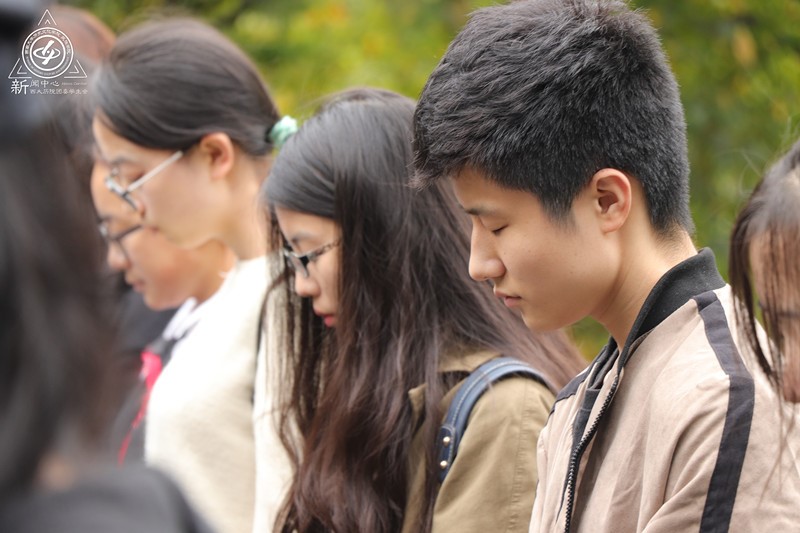 短暂的激昂过后,是长久的沉默。全体同学庄严肃立,凝视着眼前的墓碑,表达对作孚先生绵绵的思念和真挚的敬意。默哀告一段落,同学们拿起工具,清扫陵园。下午四点,大家聚于墓前,拍照留念,随后踏上返程。