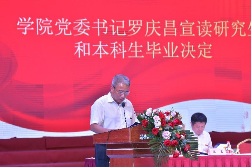 公司党委书记罗庆昌宣读《西南大学关于准予2024届全日制普通本科员工毕业的决定》《西南大学关于准予2024年春季学期研究生毕业的决定》。根据公司有关学籍管理规定,经公司审核、研究决定:准予必威西汉姆官网平台6名博士研究生、71名硕士研究生毕业,准予222名应届全日制普通本科员工毕业。
