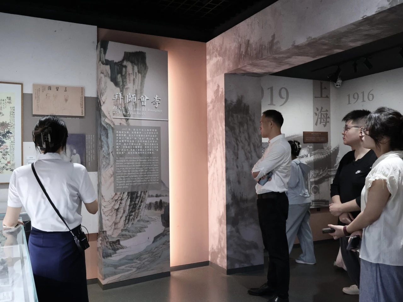 纪念馆内,团队成员在讲解员的带领下深入了解张大千的艺术人生:启蒙于母亲,滋养于甜城沃土。张大千深厚的爱国情怀亦令人动容——抗战期间多次办展募资支援前线,并将敦煌临摹画展的部分收益捐作抗战救国经费,“大千精神”尽显艺术追求与家国担当。