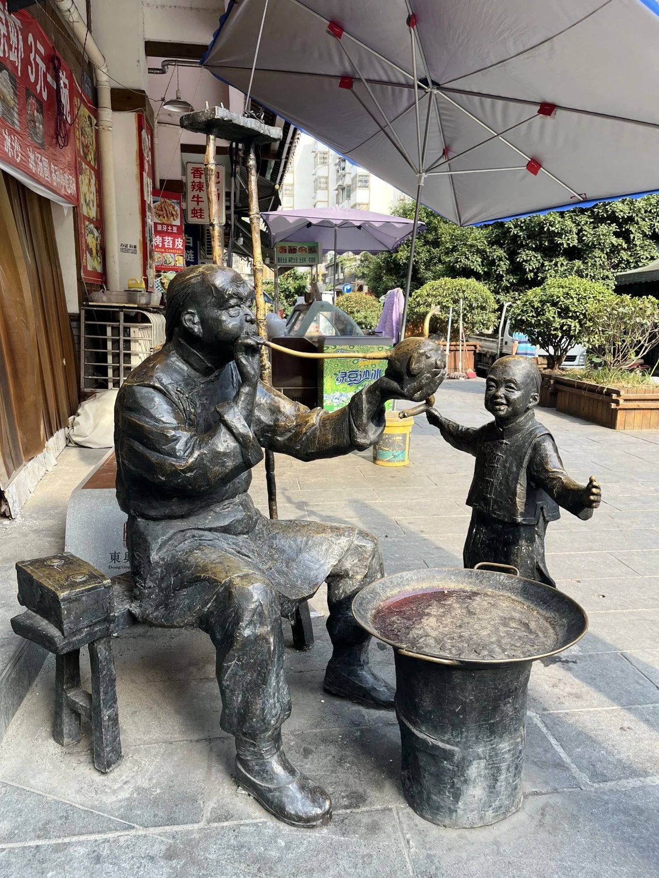 与此同时,另一组成员深入东兴老街区调研。清末民初,这里依托码头水运,糖业帮、航运帮往来如梭,蔗糖、蜜饯远销湖广地区。2010年改造后,“力之帮”“帆之魂”“甘之如饴”三大文化广场重现东兴街区的昔日风貌。成员们借用民族学的调研方法,分组探访东兴街、农校街和凤窝街的整体风貌、店铺营生及商品销售等情况,并做了有限的访谈工作。略有遗憾的是,如今与糖直接相关的店铺寥寥无几,足以折射出传统糖制品在时下市场经济大潮中的生存状态。