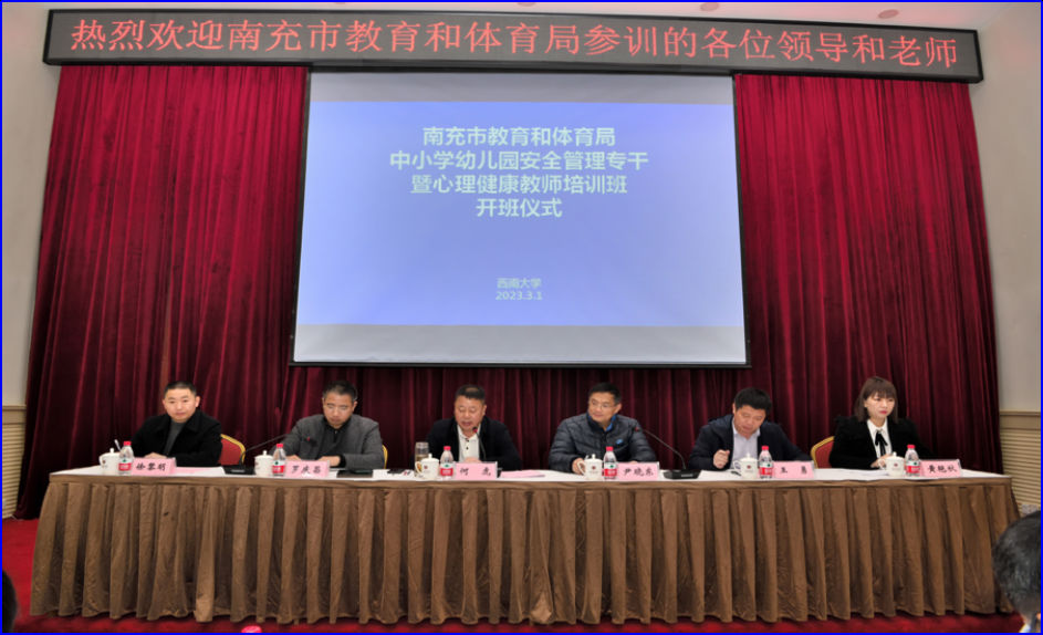 2023年2月28日,来自南充市教体系统的130余名管理人员和一线教师齐聚西南大学,参加由南充市教育体育局组织,必威西汉姆官网平台承办的中小学(园)安全管理和心理健康教育培训,接受一场培训的思想盛宴,开启了为期五天的学习之旅。本次培训,必威西汉姆官网平台高度重视,从课程设置、专家团队、食宿安排等方面都作了精心策划和充分准备。“千红万紫安排著,只待新雷第一声”。 3月1日上午,开班典礼在西南大学桂园金桂厅举行。