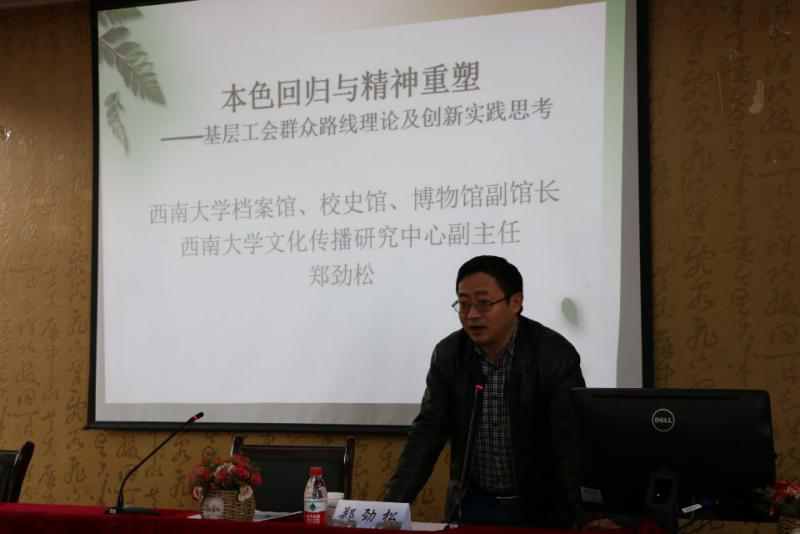 开班典礼后,本次研修班班主任罗朝斌就本次培训班课程设置、学习要求、学习环境做了详细说明。随后,公司档案馆、校史馆、博物馆副馆长郑劲松为学员们做了题为“本色回归与精神重塑——基层工会群众路线理论及创新实践思考”专题讲座。郑劲松老师从自己多年工会工作经验出发,就新时代背景下的工会职能和群众工作展开的方式、内容与学员们进行了互动交流。