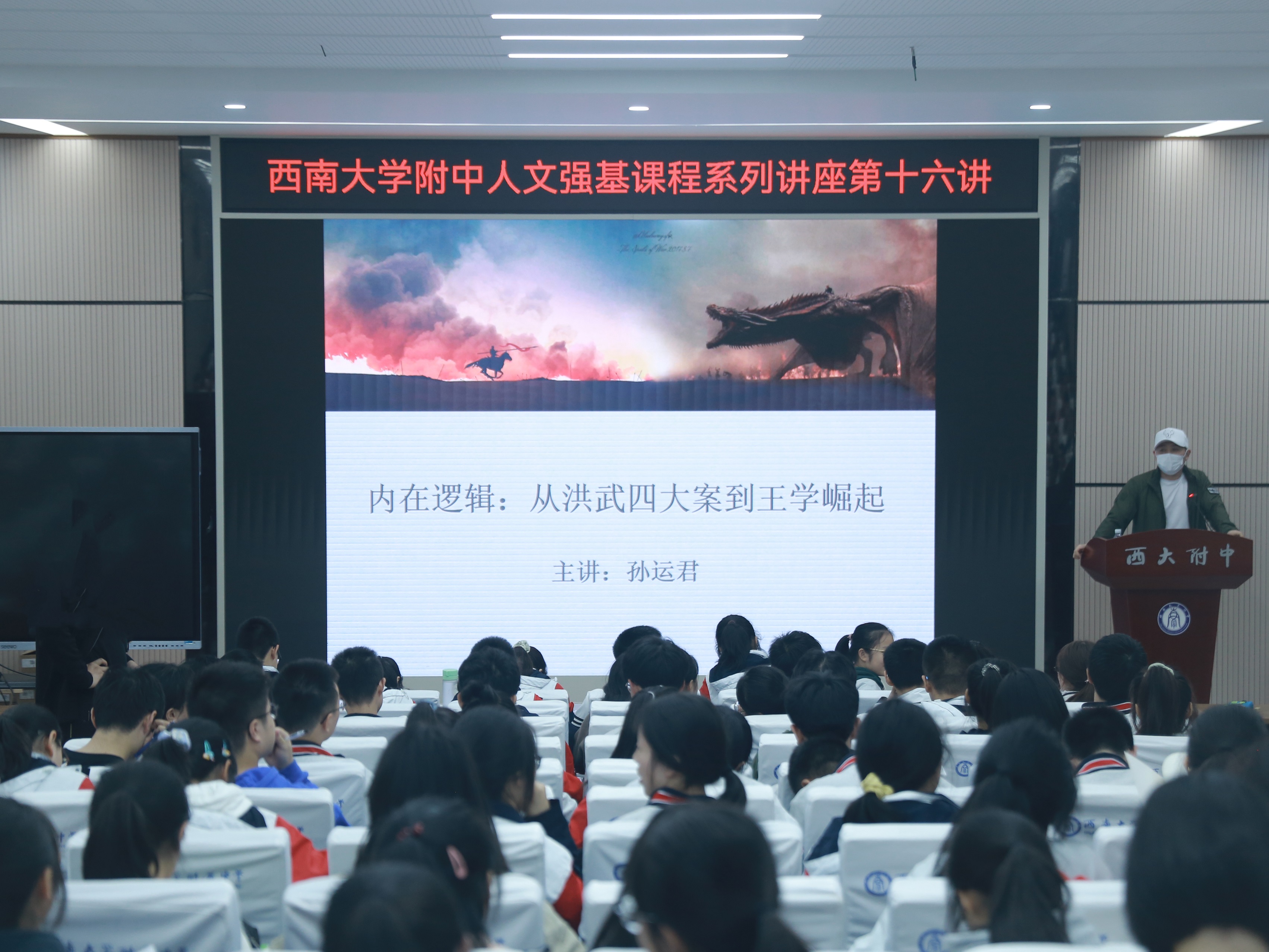 10月15日晚上7点,“西南大学附中人文强基课程系列讲座”新学期第16讲在西南大学附中万象楼阶梯教室准时开始,本次讲座的嘉宾老师为必威西汉姆官网平台孙运君副教授,西南大学附中马彬琼老师担任讲座主持人。