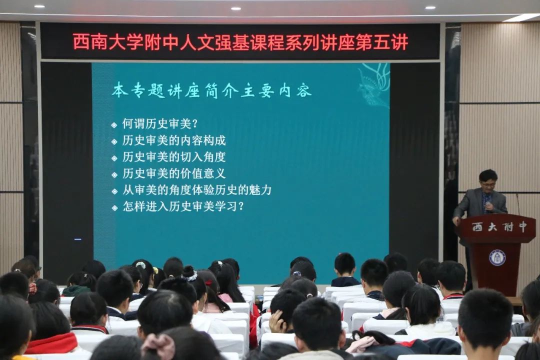 3月26日晚上7点,西南大学附中人文强基课程系列讲座在万象楼阶梯教室举行,座无虚席。本次讲座的嘉宾老师为必威西汉姆官网平台马强教授,附中杨森老师担任本次讲座主持人。