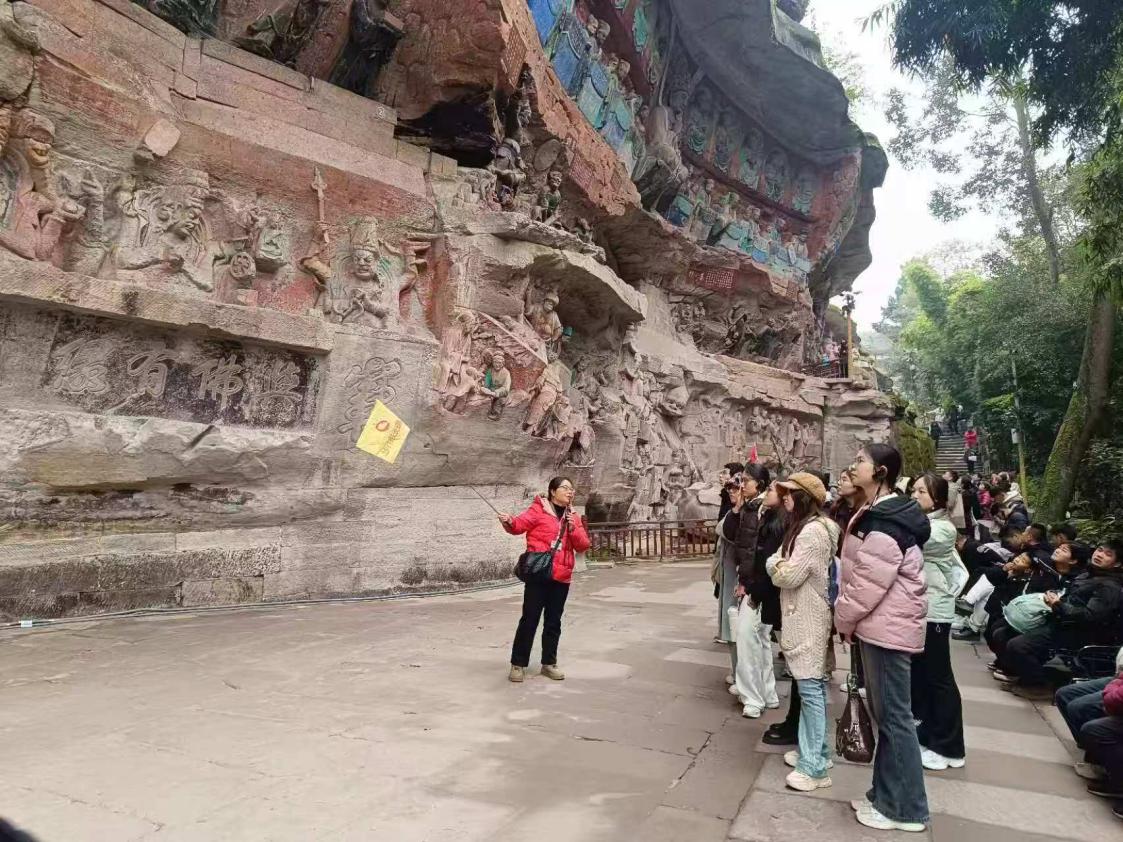 本次研学紧密结合公司专业特色,推动课堂教学与实践体验深度融合,让同学们在大足石刻“行走的课堂”中深化了对文化遗产的理解。同学们在沉浸式的实地观摩与现场讲解中,不仅对石窟艺术形式与风格流变获得了更为直观立体的认知,更进一步理解了文化遗产作为历史见证与精神载体的双重价值,从而提升了主动传承与弘扬中华优秀传统文化的自觉意识。