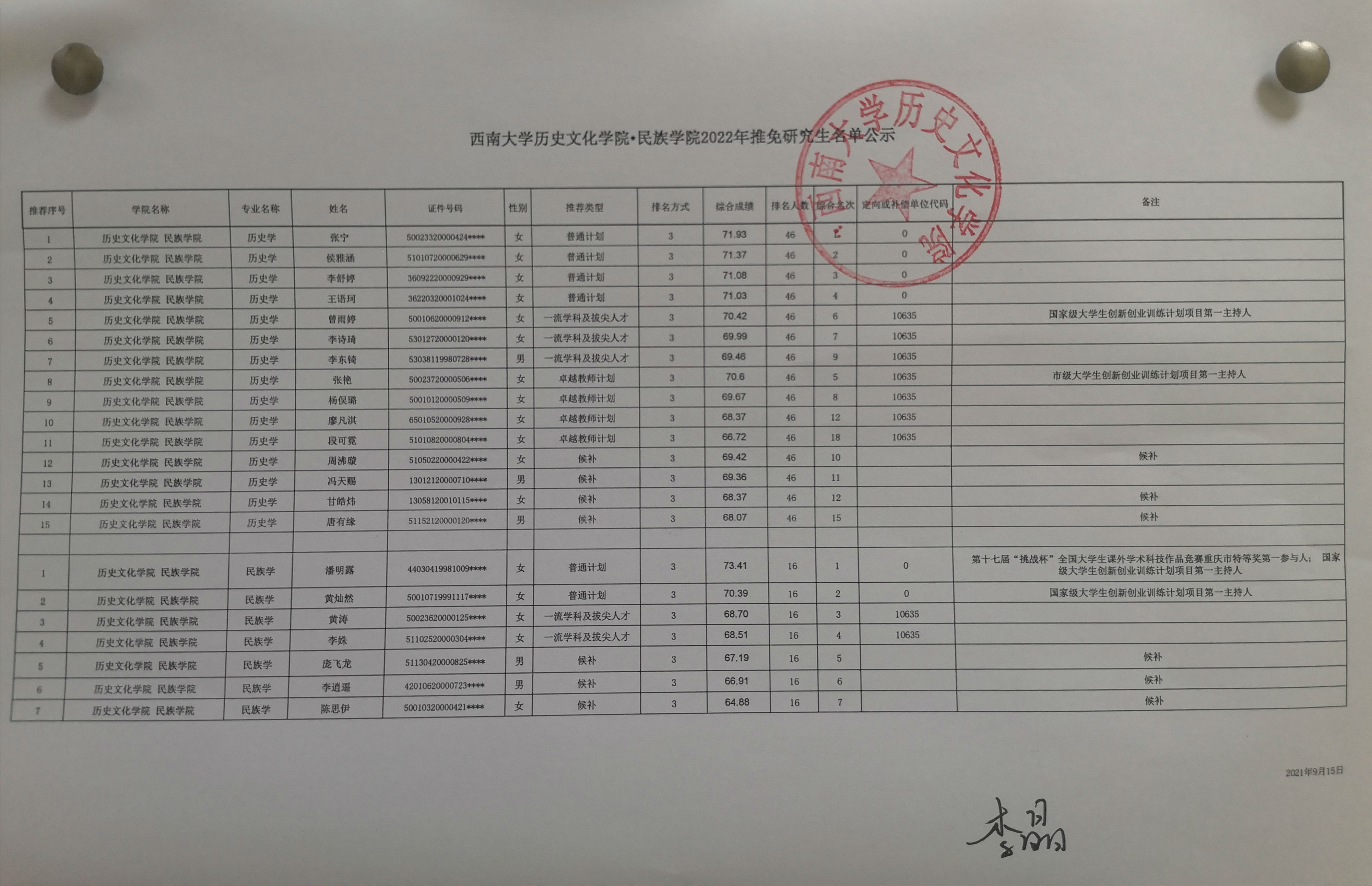 必威西汉姆官网平台2022年拟推免研究生公示名单